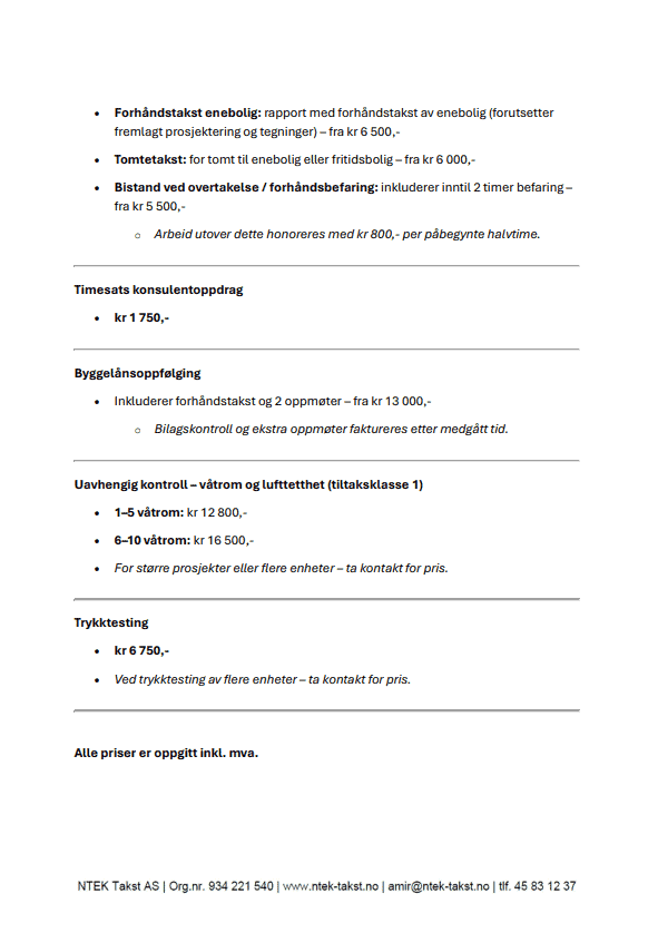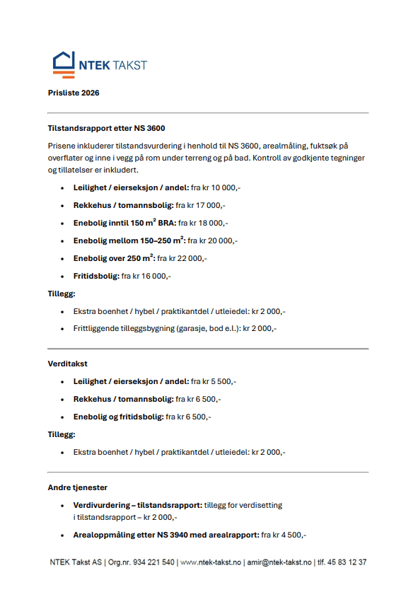 Prisliste 2026